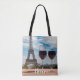 Two glasses of wine with Eiffel tower Tote Bag
