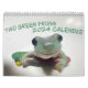 A 2024 calendar featuring unique pictures of the current Two Green Frogs frogs