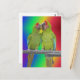 These Two Cute Green Parrots we placed before a Rainbow Background.