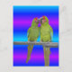 These Two Cute Green Parrots we placed before a Turqoise, Blue and Purple Neon Background.