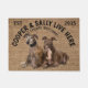 This welcome mat can be personalised with your dog’s name, the slogan can also be changed or you could use a picture of your own dog (make sure it's transparent). Text reads: Cooper & Sally Live Here…. All treats welcome.