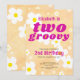 Two Groovy 2nd Birthday Yellow Flower Power Hippie Invitation