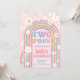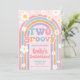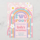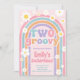 Design is for a Second Birthday! Features a retro rainbow, fun typography, and flowers. A sweet and colourful invitation for your little one's 2nd birthday celebration! Personalise the editable text.