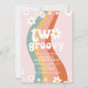Retro inspired Two Groovy 2nd birthday invitation with hippie style rainbow, daisies and boho fonts and colours.
