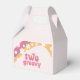 Retro inspired two groovy second birthday favour box with hippie style daisies and boho fonts and colours.