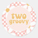 Two Groovy Pink Daisy Chequered Classic Round Sticker