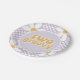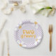 two groovy! Retro chequered print with Daisies Birthday party plates in purple.