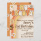 Let’s get groovy! Celebrate your little one turning TWO with this adorable retro-themed birthday invitation. Featuring funky 70s-inspired fonts, warm sunset tones, and happy little flower power vibes, this editable digital invite is perfect for printing or sending digitally.