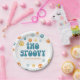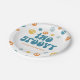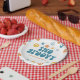 Two Groovy Retro Style Birthday party plates with yellow, orange and blue.