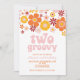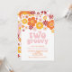 Two Groovy Retro floral birthday invitation with 70's style flowers and boho fonts and colours.