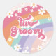 Two Groovy Retro Rainbow 2nd Birthday Classic Round Sticker