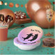 This paper bowl has two happy dancing black bears wearing pink and purple striped party hats on pastel coloured background of yellow, peach pink, and purple. Customise your text with the template.