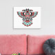 This Haida Native inspired design features a two headed spirit bird. The symmetrical bird's wings spread out on both sides of the pattern with its tail feathers hanging below. The design is comprised of stylised tribal shapes and natural colours which gives the design a beautiful and unique look.