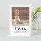 A modern 2nd Birthday invitation featuring your own photo and the word 'two' with a heart underneath.