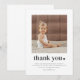 A modern and sweet 2nd Birthday thank you card featuring your own photo and the word 'thank you' with a heart next to it. You can also edit all of the text colour and styles, plus the colour of the heart if you want to. Just click the 'Personalise' button -> 'Edit using design tool'.