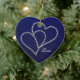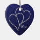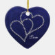 Two hearts made of bling style rhinestone - diamonds connecting and bonding over each other on a deep royal blue background with a subtle Damask pattern in it. Great for Weddings, anniversary, Engagement, Celebration of love, romance, couples. Hang from your Christmas tree year after year in honour of the year given or celebrated. Customise the text to suit or email me here if you need assist with customising or the image placed onto other Zazzle products in my store. If I can ... I will! ~ :)