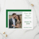 Design features the photo you provide as main design displayed against a white background and framed by an elegant, forest-green colored border. To the right of photo, your text containing heading, names and city & state of wedding are displayed in a matching forest-green font.