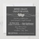 Black and white rustic country chalkboard wedding invitation template. These chalk wedding invitations have two intertwined hearts and "we're crazy. crazy in love." proclamation, as well as the traditional "Holy Matrimony". This simple and traditional chalkboard wedding invitation adds a touch of old fashioned wholesomeness!