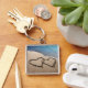 Beautiful, original photograph of two hearts written, drawn in the sand along the blue ocean water to signify love and romance. Great concept for upcoming summer weddings. Shown is the large premium key chain.