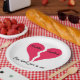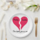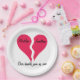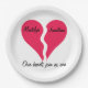 These paper plates are great for a Valentine's Day party, dinner or celebration. The design features two halves of a heart that match together. A personalised name is on each heart half and is easy to customise. The customisable words under the hearts say "our hearts join as one" and can be changed to your own words. Easy to customise. The colours are red and black. Fully customisable.