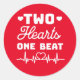 Two hearts. One Beat (white text) Valentine's Classic Round Sticker