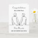 Congratulations on your wedding! Two hearts, one lifetime sentimental card for a gay couple who just wed. Simple artsy line art showing two grooms getting married holding hands.