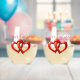 Two Hearts, One Love stemless wine glass featuring intertwined red hearts. A romantic glass perfect for Valentine’s Day, anniversaries, weddings, or date nights.