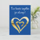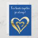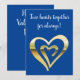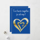 Two hearts together faux metallic gold blue holiday card