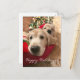 Send special holiday greetings this season with this cute Christmas postcard! Design features a photograph of two golden retriever dogs who are laying on a red pillow, beneath a decorated tree. Could they be waiting for Santa Claus to arrive? Customizable front text reads, "Happy Holidays!" while the back text states, "Wishing you the best, this Christmas season & always."