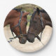 A light brown horse and a dark brown horse facing each other nose to nose. They look so adorable as if they are telling each other they love each other.
