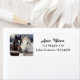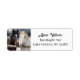 A return address label with an illustration of two horses on a snowy winter ranch with a full moon in back of them.