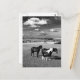 Atmospheric black & white photograph of two horses in fields set against a dramatic sky