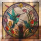 hummingbird bird,colourful tulip flowers floral,stained glass style art tulips,stain glass flowery nature,beautiful animals in flight,pretty flying spread wings,outdoor garden backyard yard,turquoise aqua blue humming bird,ruby throated blue green,spring pastel animal art