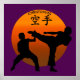 Two Karate Fighters With Rising Sun and word Karate in Japanese language in orange and black colors