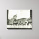 Two kitten playing on piano keyboard, (B&W) Canvas Print