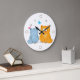 Two kitties - cartoon like cats one blue and the other orange- a couple butterflies flitting about - a drawing for cat lovers on round or square clocks