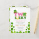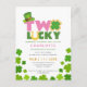 Two Lucky Shamrocks 2nd Birthday St. Patrick's Day Invitation Postcard. Cute St. Patrick's day themed baby's second birthday party invitation " Two Lucky " with leprechaun hat and shamrock cookie and lucky charms.