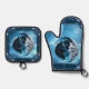 Two majestic wolf heads oven mitt & pot holder set