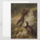 This design features a painting by the German artist Johannes Christian Deiker (1822–1895). It shows two martens climbing on a rock in a forest landscape. A marten is a weasel-like mammal that has a bushy tail and large paws with partially retractile claws. The small mammals appear to be acting aggressively with each other. The martens have brown fur and tails; their furry bellies are white. There are many trees and much greenery behind the two animals.