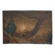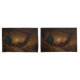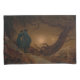 This design features a painting by the 19th-century German artist Caspar David Friedrich (1774–1840). It depicts two human figures in a dark forest. They are silhouetted by a brighter pastel-coloured sky. The sky suggests that the time is around dusk, as the waxing crescent moon appears to be close to setting. The dark foregrounds and light backgrounds create a sharp contrast and produces an effective artistic effect. A dead uprooted tree's dark roots and branches can also be seen in the foreground, contrasting with the sky. The jagged branches and stark contrasts seem to create a threatening environment for the figures, the entire atmosphere is reminiscent of the imposing Gothic style seen originally in the mediaeval era, but revived here in the Romantic period. The figures themselves are dressed in dark colours and stiff somewhat formal garments, which also serve to signify their upper-class status. The artwork suggests spirituality in nature and the presence of the sublime, which are major themes for Caspar David Friedrich. The original German title of the painting is "Zwei Männer in Betrachtung des Mondes", which means "Two Men Contemplating the Moon".