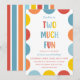 Celebrate a big milestone with a “Two Much Fun" colorful second birthday invitation that sets the tone for an unforgettable party! Bright, colorful design elements and cheerful primary colors make this invitation perfect for a joyful second birthday celebration. Playful typography and a fun party vibe help create excitement for family and friends as they gather to celebrate your little one turning two. Ideal for boys or girls, this happy, modern design pairs perfectly with cake, balloons, and lots of smiles. Shop the rest of the collection for corresponding products like napkins, enclosure cards and more to create a cohesive party!