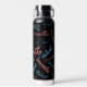 Two names couples pattern monogram blue light pink water bottle