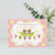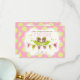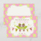 Cute twin African baby girls in a pea pod with bunting banner and pink and green polka-dot print background thank you card.