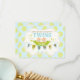 Two cute twin baby boys in a pea pod with bunting banner and polka-dot print background thank you card.