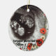 Two Photo Custom Text Red Poppies Free Palestine Ceramic Ornament. There is a transparent layer with a frame of red poppies as a symbol of Palestine at the front and back of the ornament; the front and back photos behind the poppy frame can be changed to your own photos, e.g. pets, family members, friends, teams, etc. The text can be changed and personalized to say anything you want, e.g. "Happy Holidays", or your pet's name, or the name of a family member or friend, a statement of solidarity, etc.. The font and color can be changed, and new textboxes can be added as needed, to the front and back of the ornament. See the different ornament shapes available. And as always, remember to keep speaking up against Israel's genocide, and the UAE-backed RSF's genocide in Sudan. Remember that boycotts work, even if their effects aren't immediate.