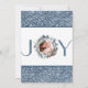 Delight friends and family with this elegant two photo holiday card. Design with stylish blue and grey silver swirl pattern as background. On the front, frame with your image and three text sections for your own customisation. On the back, same swirl pattern from the front on top and bottom area, as well as gorgeous phrase "JOY" with letters "J" and "Y" filled of swirl pattern, while letter "O" showcase your second image with exquisite blue and silver holiday wreath as photo overlay. Collection with coordinating products available.