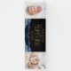 Welcome guests with this chic, glamourous 90th birthday party photo banner, featuring a navy blue watercolor agate border trimmed with gold faux glitter on a black background. Easily replace the two sample images with photos of the guest of honour. Personalise it with her name in gold-coloured text beneath the words "Happy 90th Birthday."