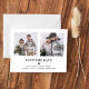 This simple and stylish black and white wedding save the date postcard features classic, elegant black text with a matching heart and a spot for your names and wedding details. There is also room to show off two of your favourite personal photos for a modern way to let your friends and family know about your upcoming wedding.