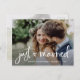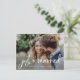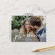 This whimsical and modern elopement or marriage announcement postcard features two of your favourite wedding photos, with trendy white rustic handwritten script and a small, stylish heart and says "just married." The back contains a second photo with a translucent overlay, and more of your wedding details and information. A simple and trendy look that is the perfect way to let family and friends know you tied the knot!