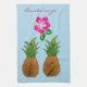 personalise by changing to your name, 2 pineapples and a pink hibiscus on any colour background